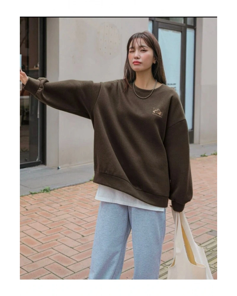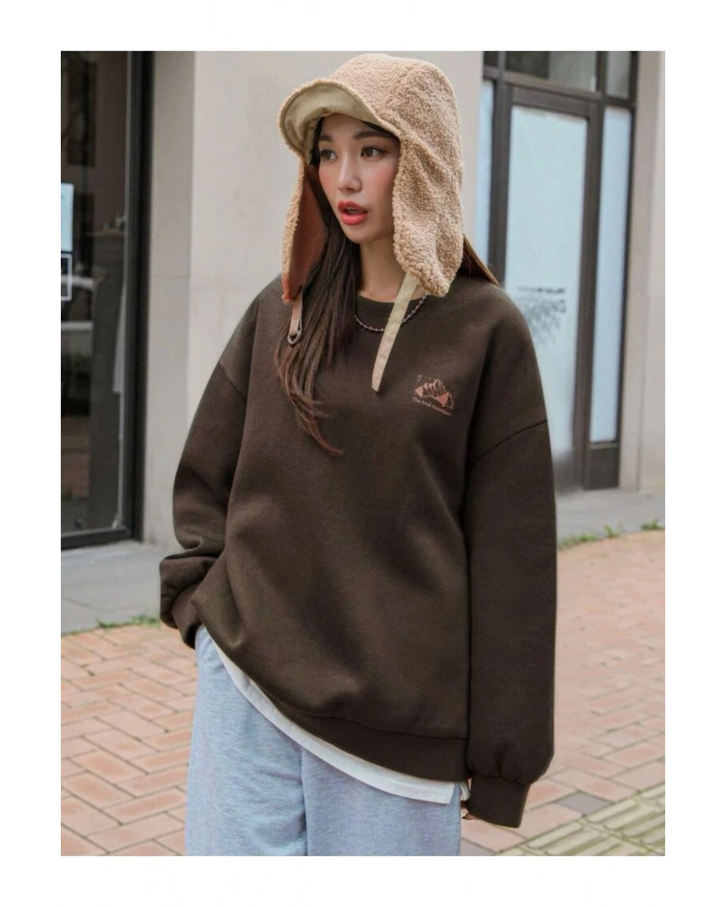 Siyah Yakasız Tüy Baskılı Unisex Sweatshirt
