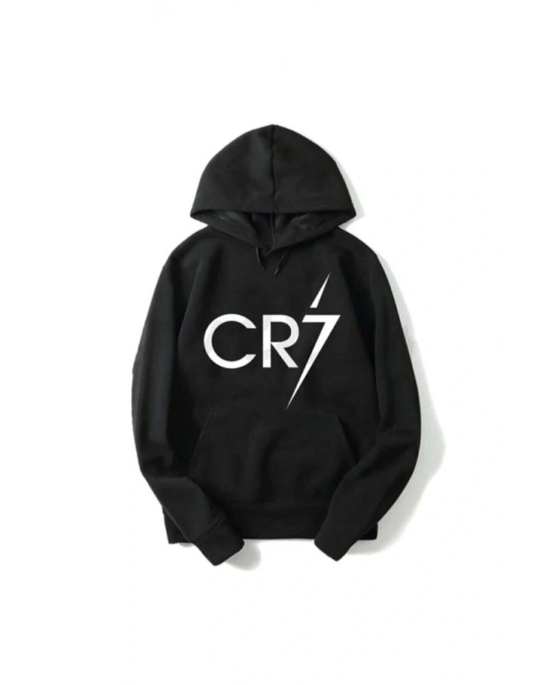 Unisex Siyah Cr7 Baskılı Sweatshirt Kapüşonlu Sw100