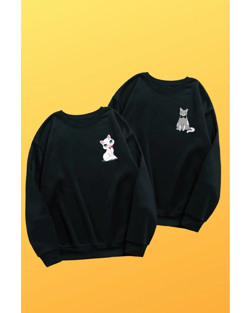 Unisex Siyah Kedicik Baskılı Sevgili Kombini 2'li Set benisengiydirkediciksweat