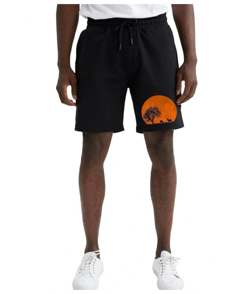 Unisex Siyah Panda Baskılı Cepli Penye Şort