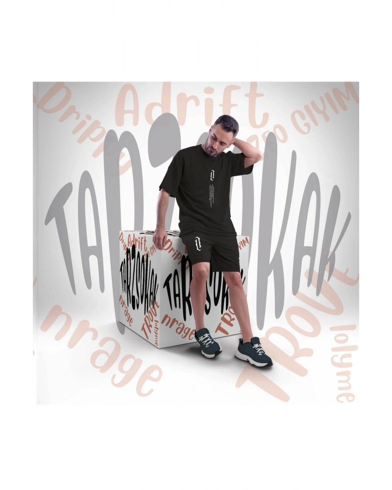 Homme Erkek Mektup Grafikli Tişört ve İpli Bel Şort Takım