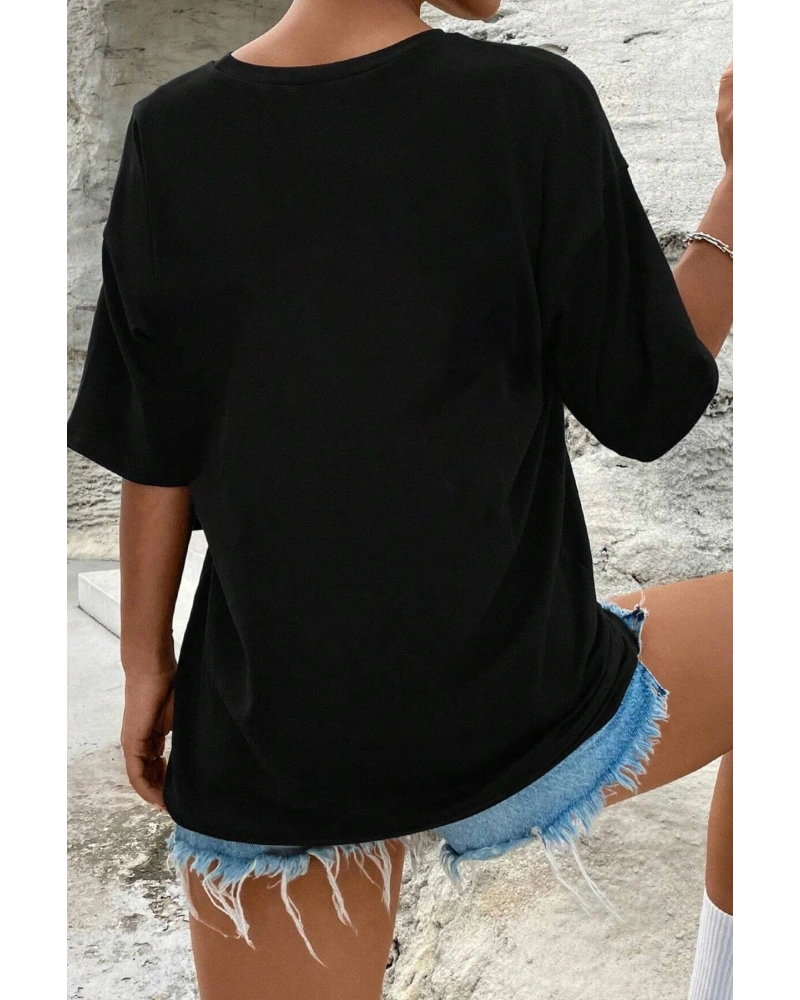 Siyah Oversize Çift Renk TÜY Baskılı Unisex Tshirt