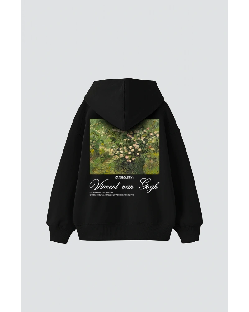 V. Van Gogh Roses Baskılı Oversize Unisex Siyah