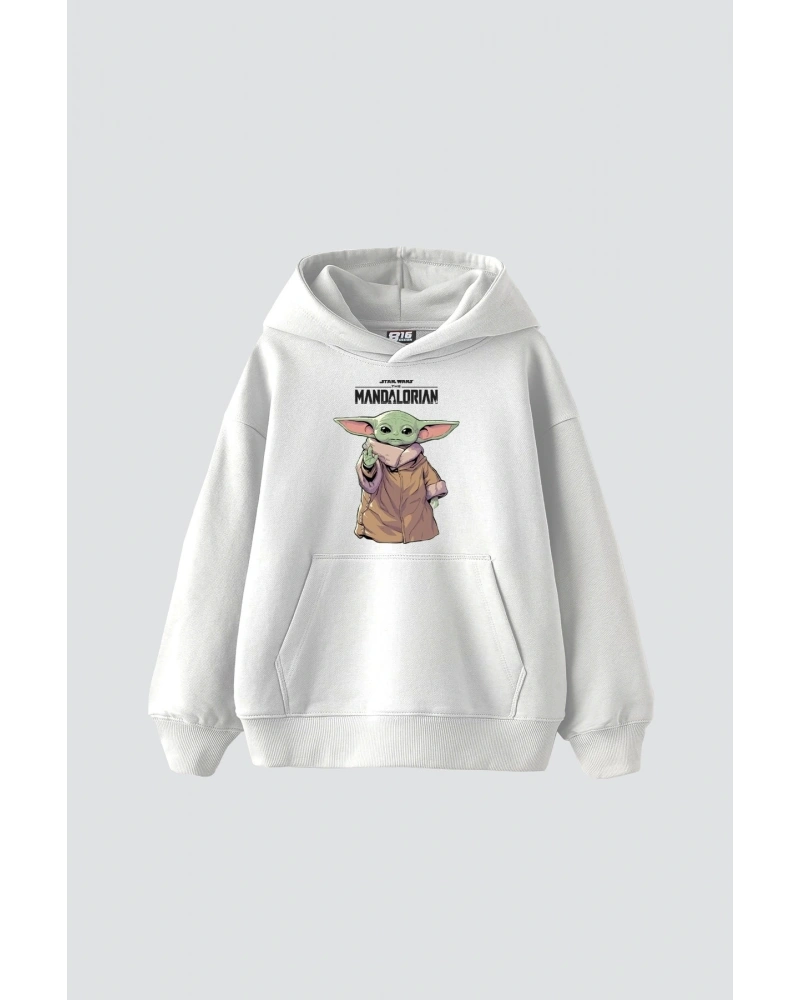 V2 The Mandalorian Yoda Baskılı Oversize Unisex Premium Beyaz