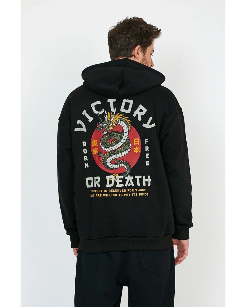 Victory or Death Siyah Oversize Unisex Kapüşonlu Sweatshirt Hoodie