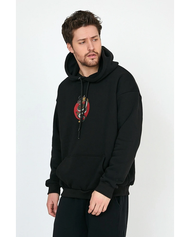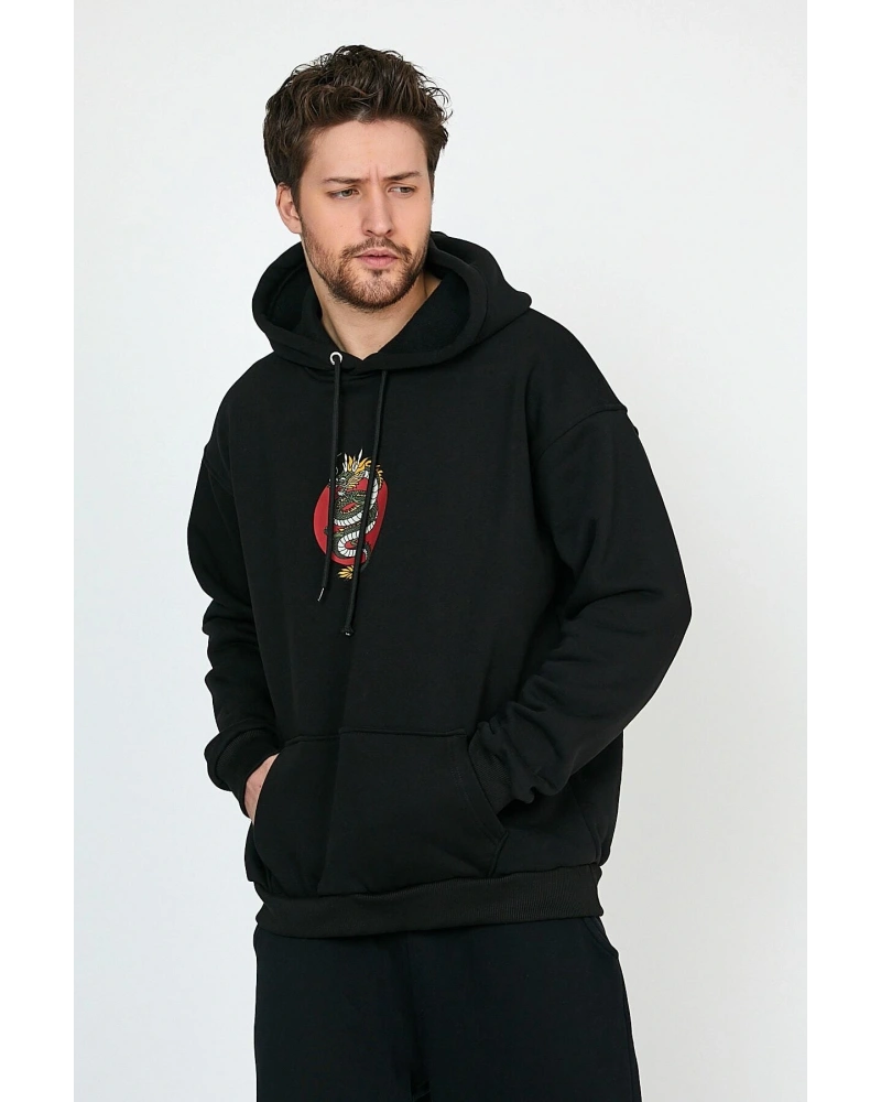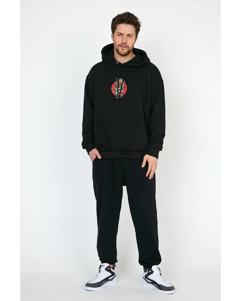 Oversize Unisex Siyah Yaşam Çiçeği Hoodie