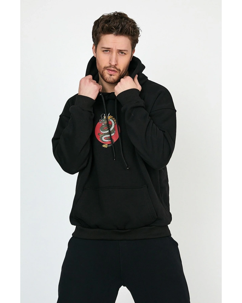 YQYQ----Oversize Basketbol Sever Tasarım Baskılı Unisex Kapüşonlu Sweatshirt Hoodie Siyah