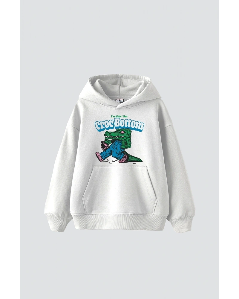 YQYQ----Oversize Batman Tasarım Baskılı Kapüşonlu Sweatshirt Hoodie Beyaz
