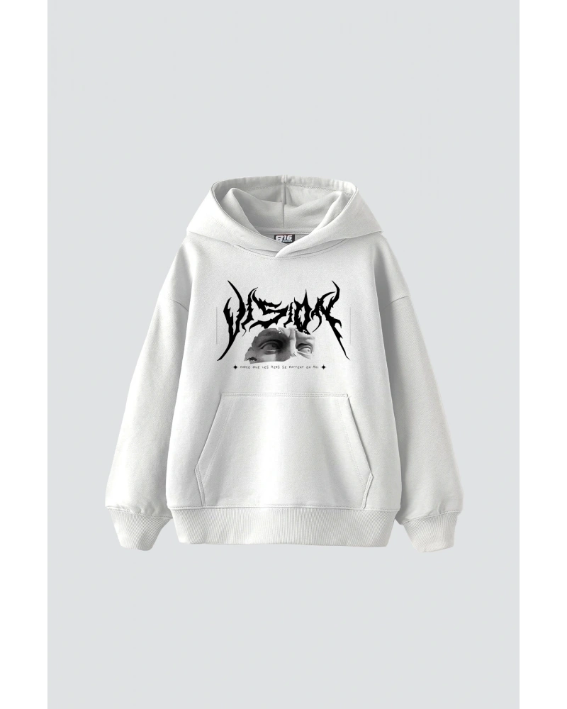 YQYQ----Oversize Mor Saçlı Lila Genç Kız Tasarım Baskılı Unisex Kapüşonlu Sweatshirt Hoodie Beyaz