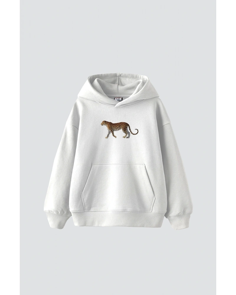 Walking Leopard Baskılı Oversize Unisex Premium Beyaz