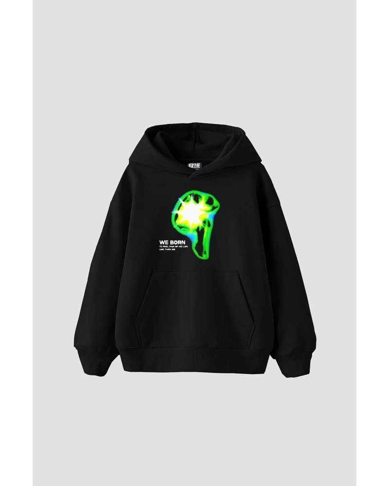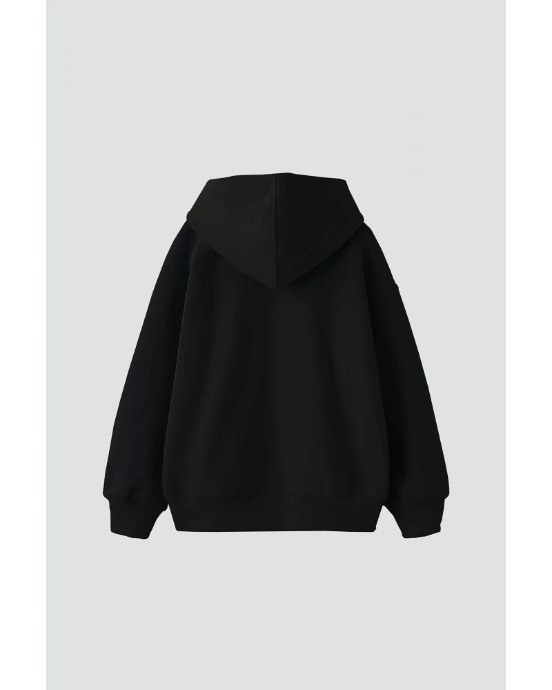 Oversize Unisex Siyah Yaşam Çiçeği Hoodie