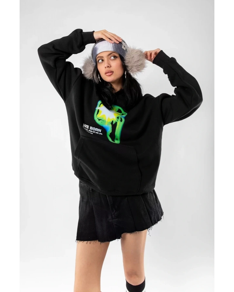 WE BORN Baskılı Oversize Unisex Siyah