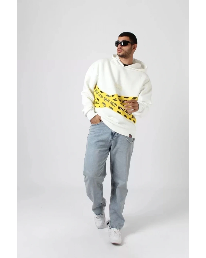 Why Not Baskılı Beyaz Oversize Unisex Kapüşonlu