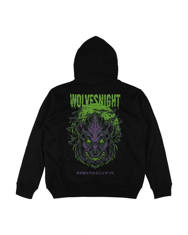 Wolves Night Siyah Oversize Unisex Kapüşonlu Sweatshirt Hoodie