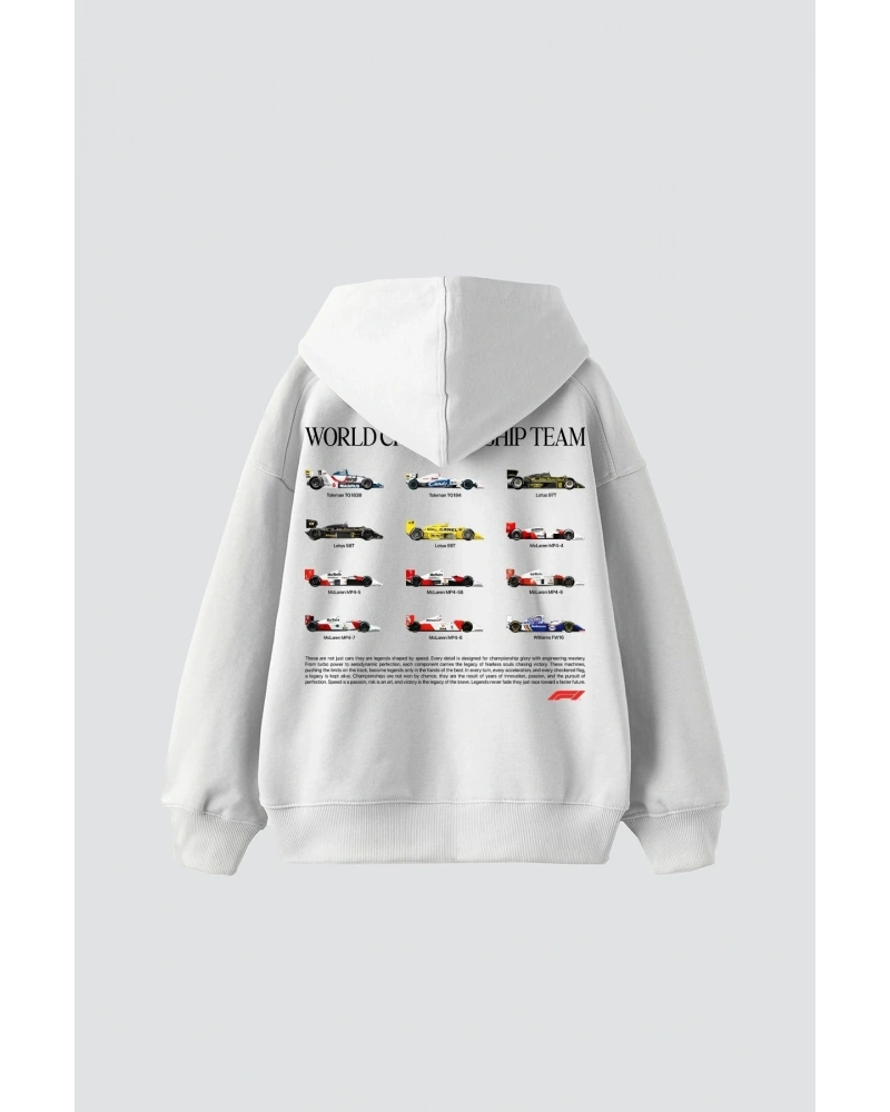 YQYQ----Oversize Araba Nissan Tasarım Baskılı Kapüşonlu Sweatshirt Hoodie Beyaz
