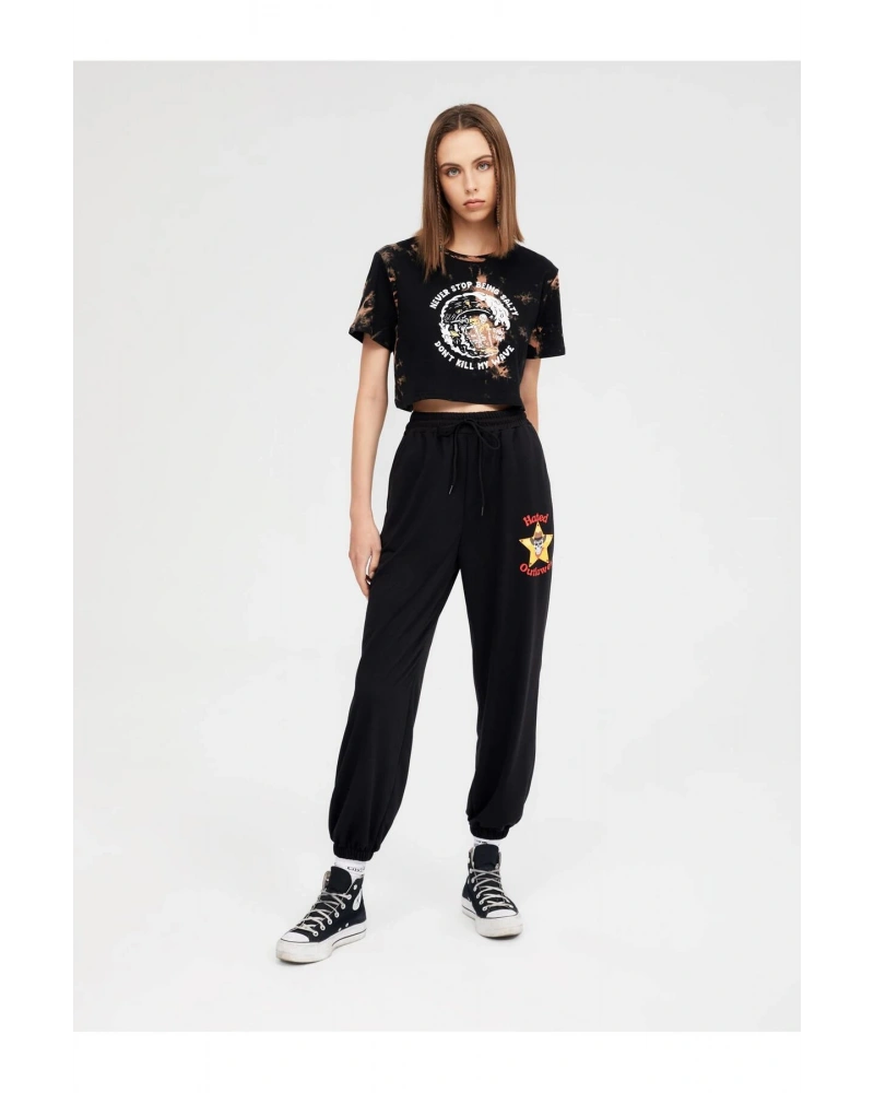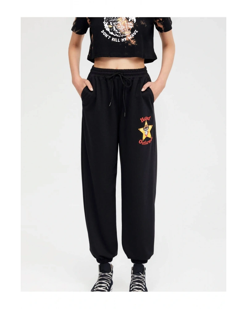 Lion Company Baskılı Siyah Paçası Lastikli Eşofman Unisex ESF01