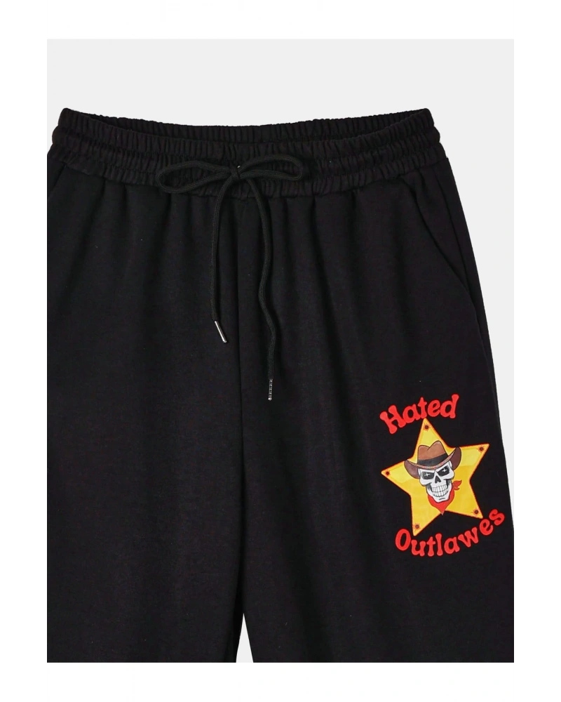 Cartoon Face & Slogan Graphic Drawstring Waist Eşofman Altı
