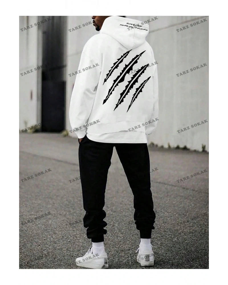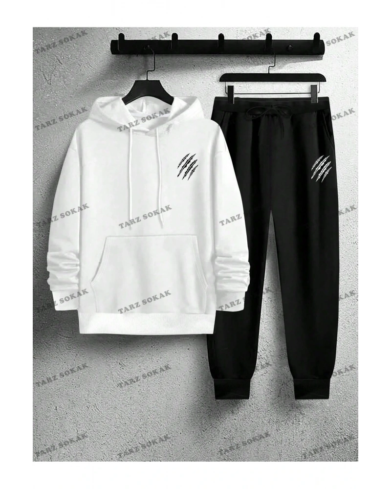 Beyaz Kapşonlu Handsome Detaylı ikili TAKIM
