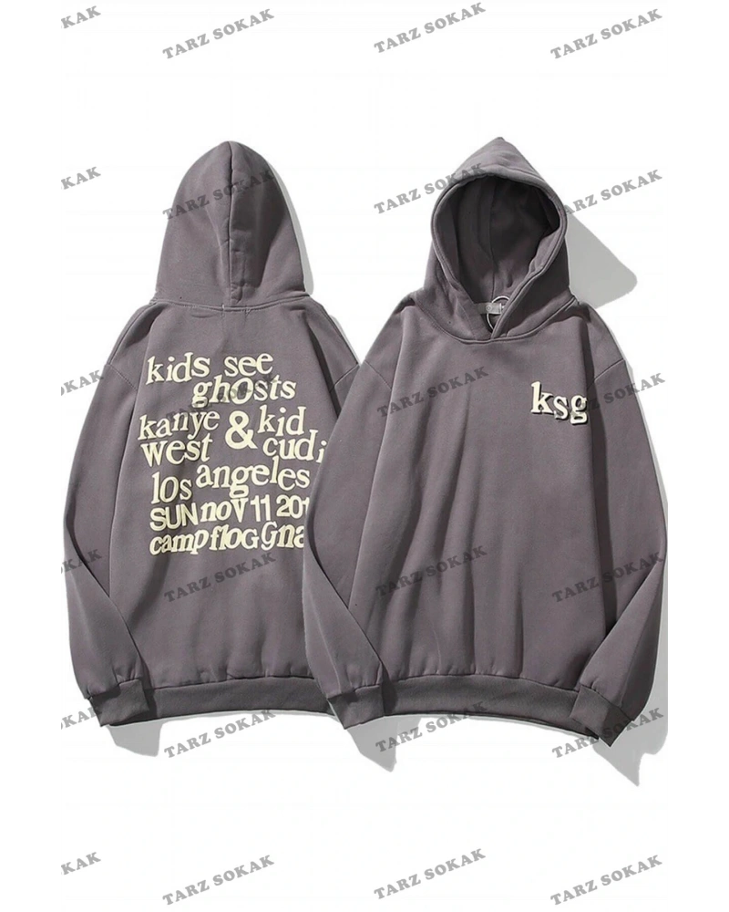 Y2K Ksg Oversıze Sweatshirt Hoodie Koyugrı KOD 2067 Gri