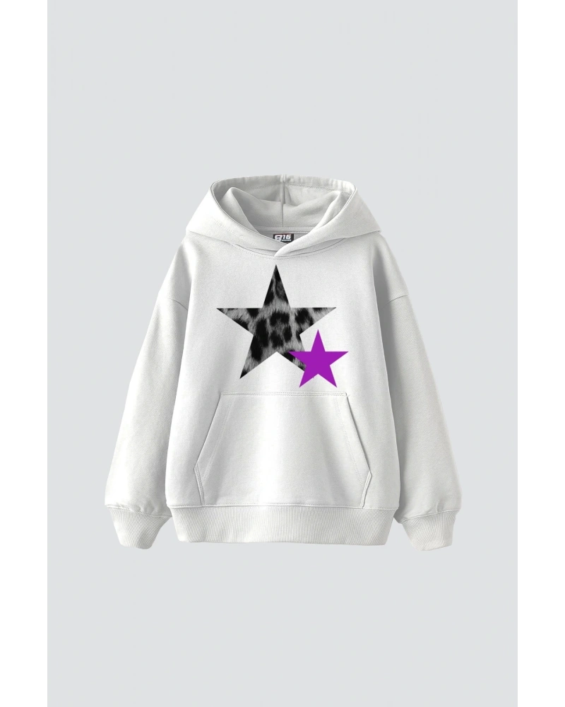 YQYQ----Oversize Mor Saçlı Lila Genç Kız Tasarım Baskılı Unisex Kapüşonlu Sweatshirt Hoodie Beyaz