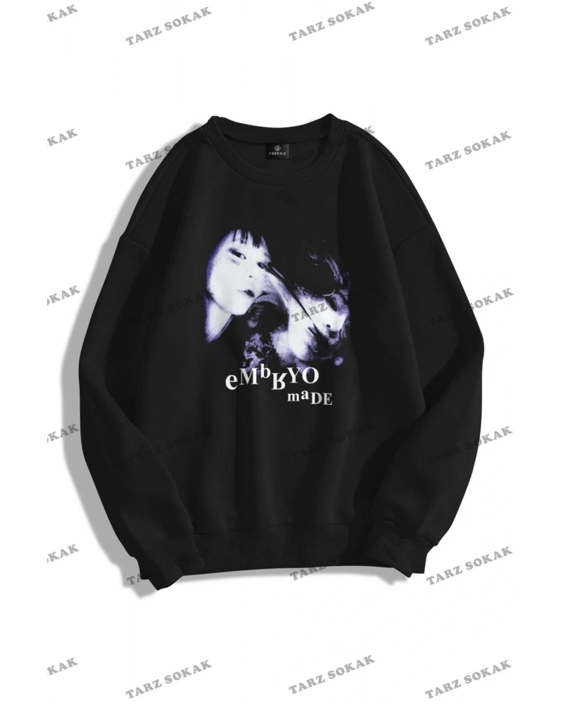 Y2K Unisex Embryo By Bisiklet Yaka Sweatshirt Hoodie KOD 1754 Siyah