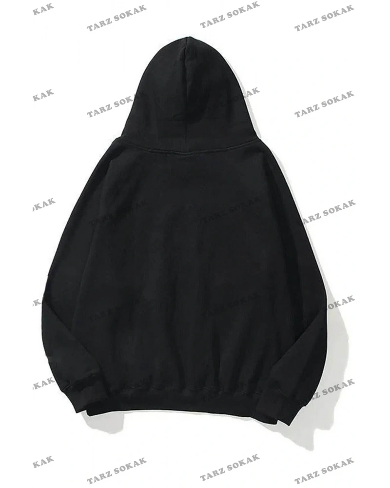Oversize Unisex Siyah Yaşam Çiçeği Hoodie
