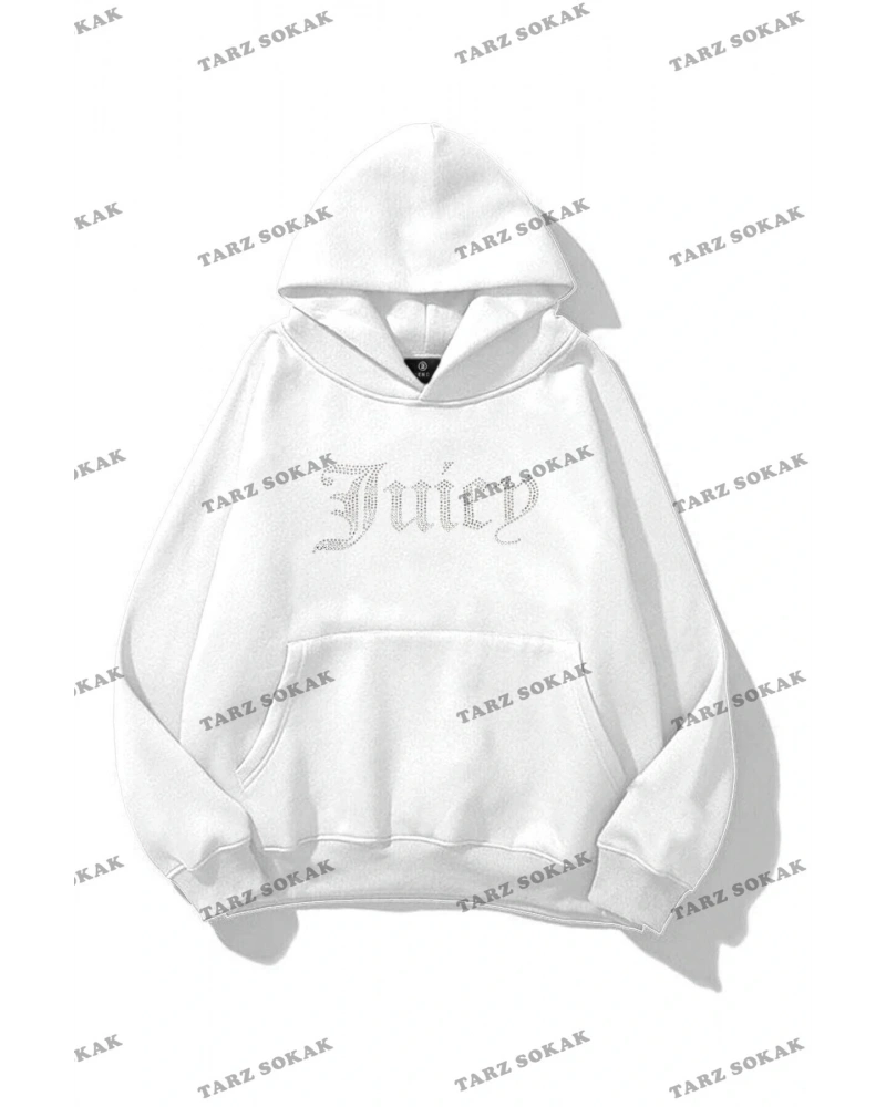 Y2K Unisex Juicy Taş Görünümlü Baskılı Sweatshirt KOD 1509 Beyaz