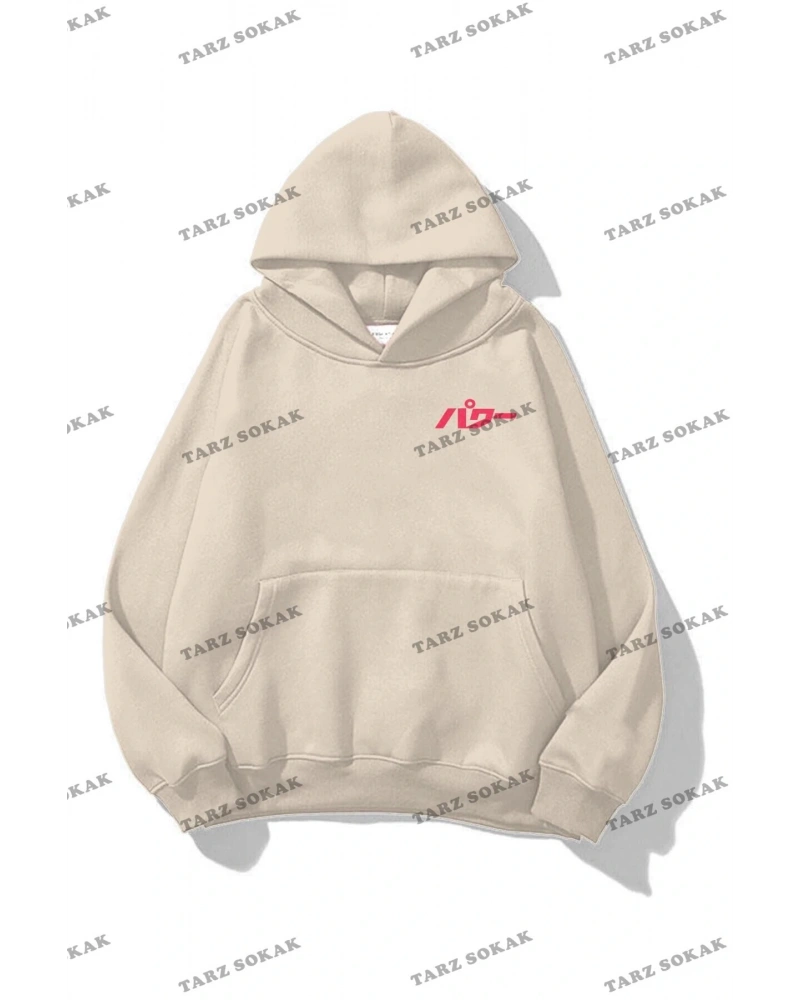 Karikatür & Harf Grafikli Damla Omuzlu Kazak Bej