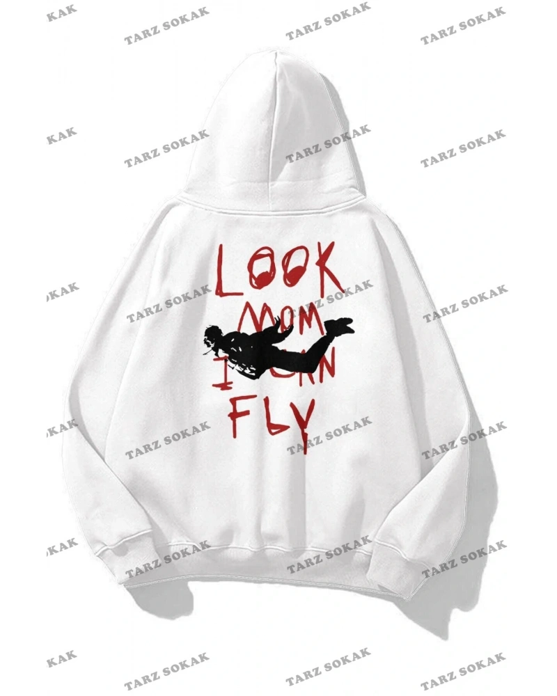 Y2K Unisex Smiley Look Mom Sweatshirt KOD 1493 Beyaz