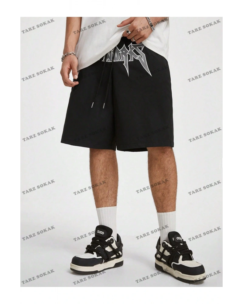 Mavi Etiket Rammstein Est 1994 Baskılı Siyah Şort ADR-SRT-256