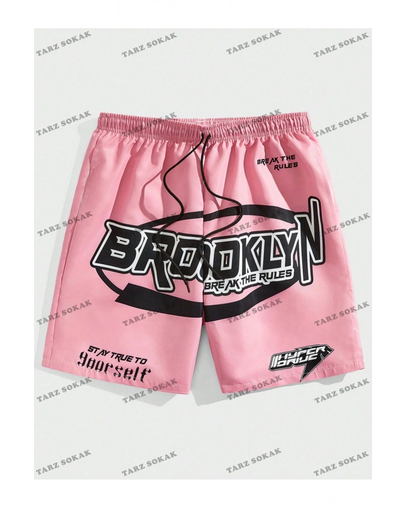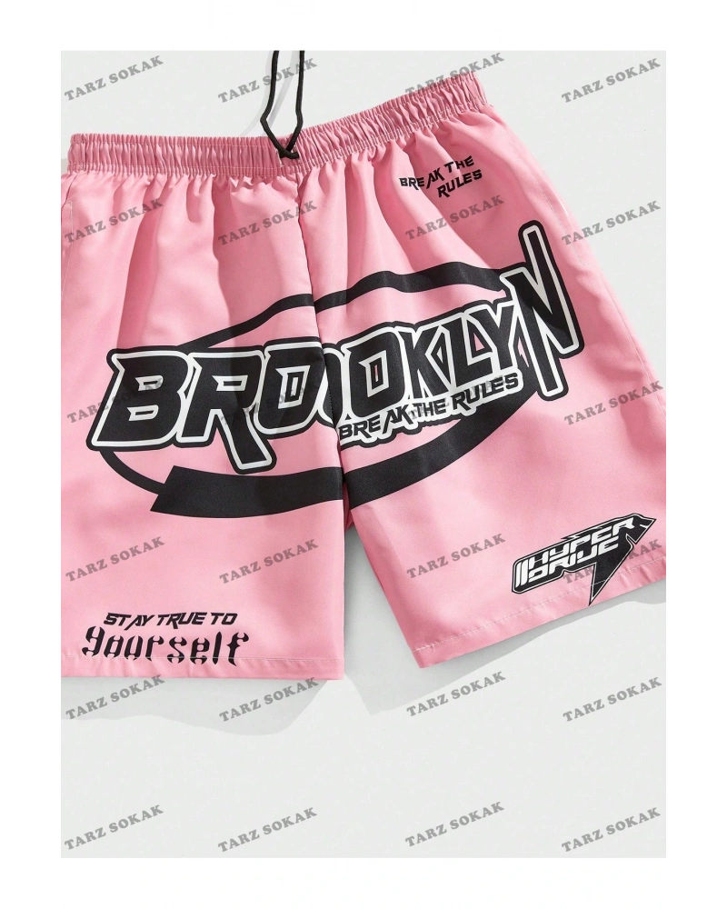 Brooklyn Baskılı Rahat kalıp Unisex Şort