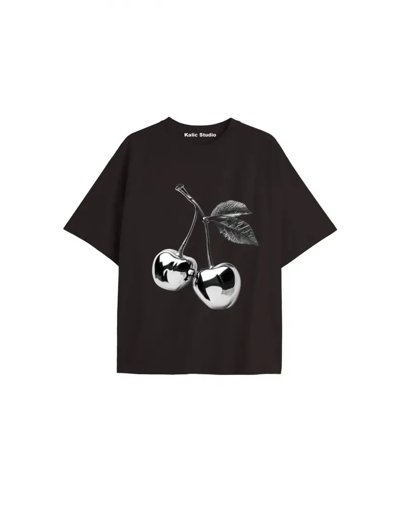 Y2k vintage Cherry Baskılı Sİyah T-shirt KOD 103
