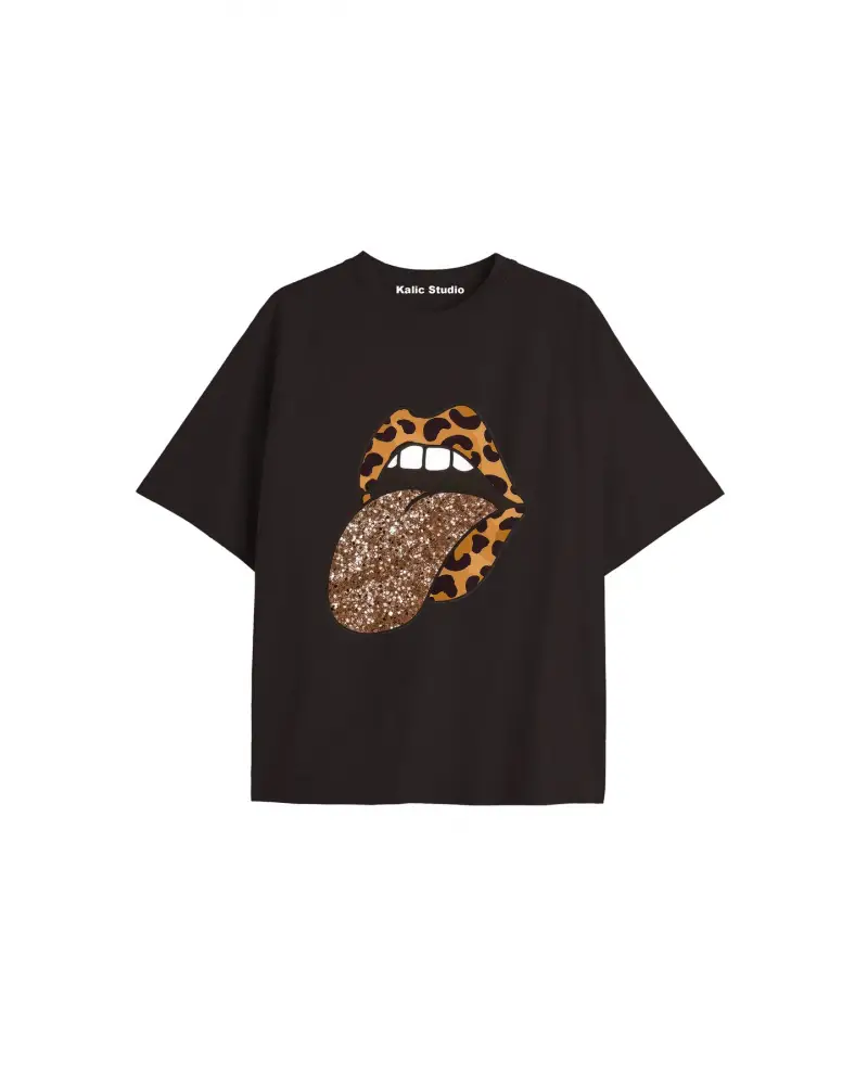 Y2k vintage Leopar Baskılı Sİyah T-shirt KOD 164