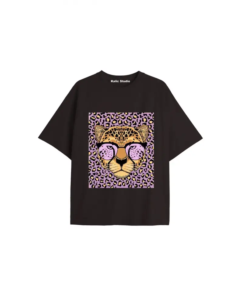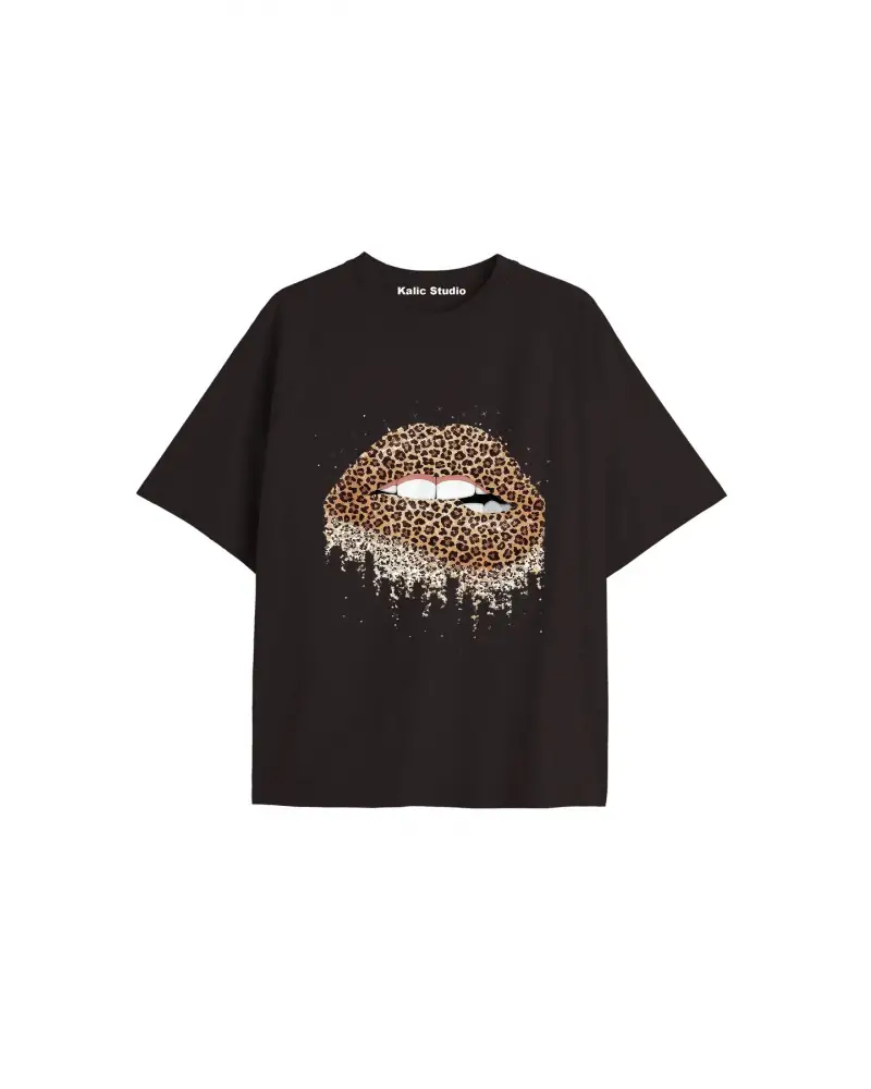 Y2k vintage Leopar Baskılı Sİyah T-shirt KOD 177