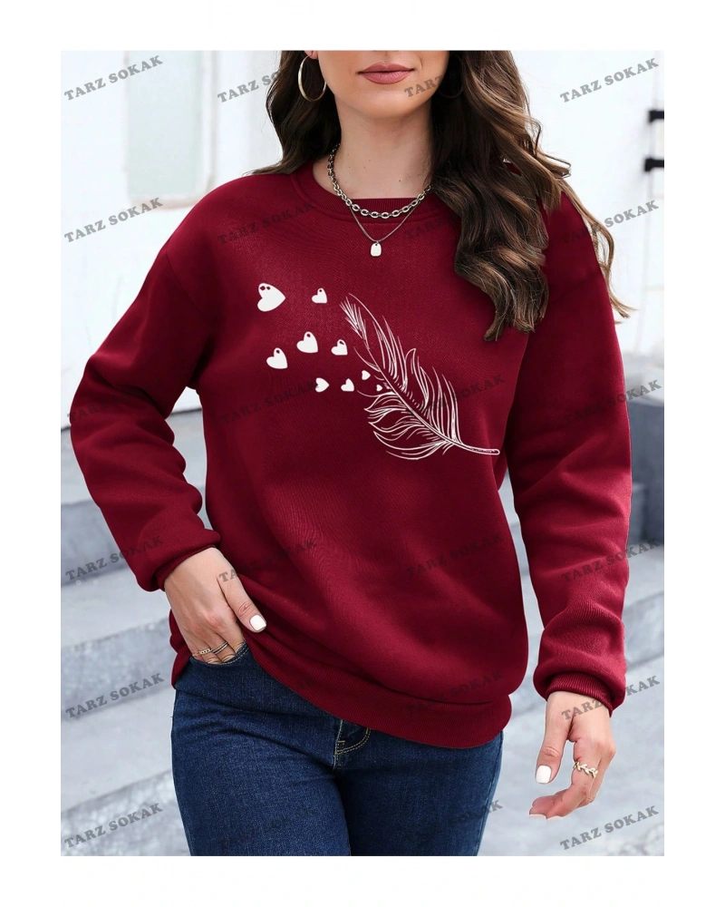 Siyah Yakasız Tüy Baskılı Unisex Sweatshirt