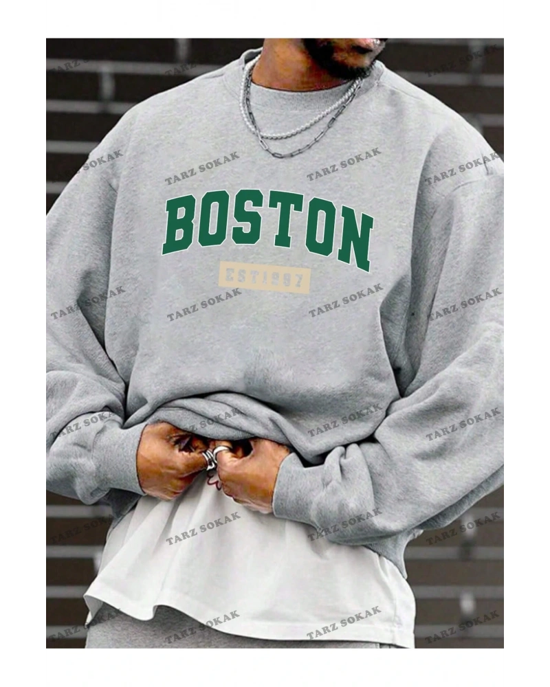 Los Angeles baskılı Üç İplik ünisex oversize Sweatshirt Füme