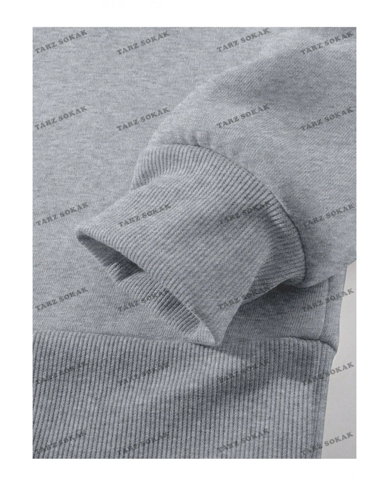 Siyah Yakasız Tüy Baskılı Unisex Sweatshirt