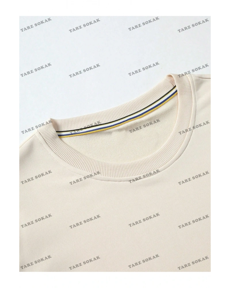 Siyah Yakasız Tüy Baskılı Unisex Sweatshirt