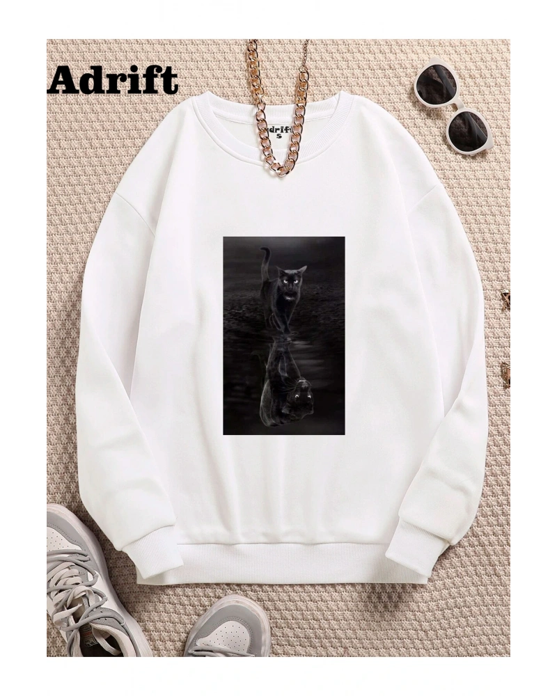Siyah Yakasız Tüy Baskılı Unisex Sweatshirt