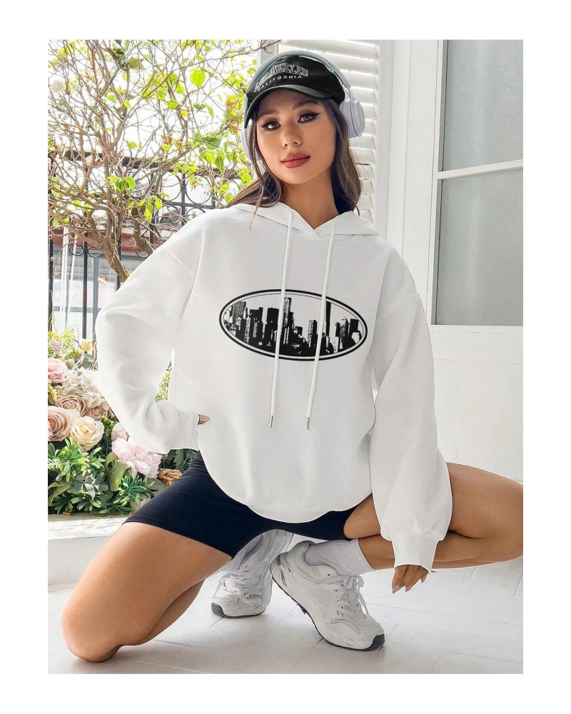 Yasolin----Kadın Gri New Rochelle Baskılı Kapüşonlu Oversize Sweatshirt