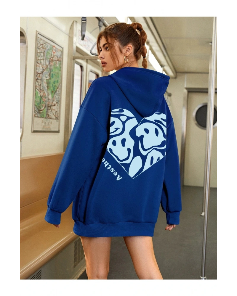 Yasolin----Kadın Aestheticism Baskılı Kapüşonlu Sweatshirt MAVİRENK