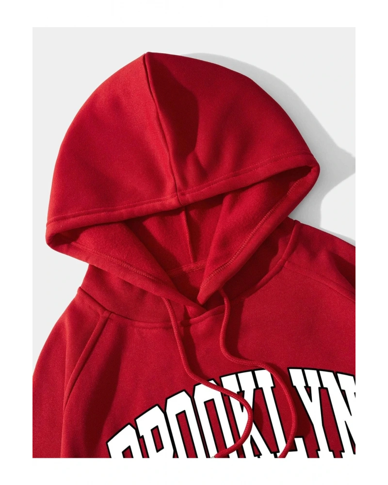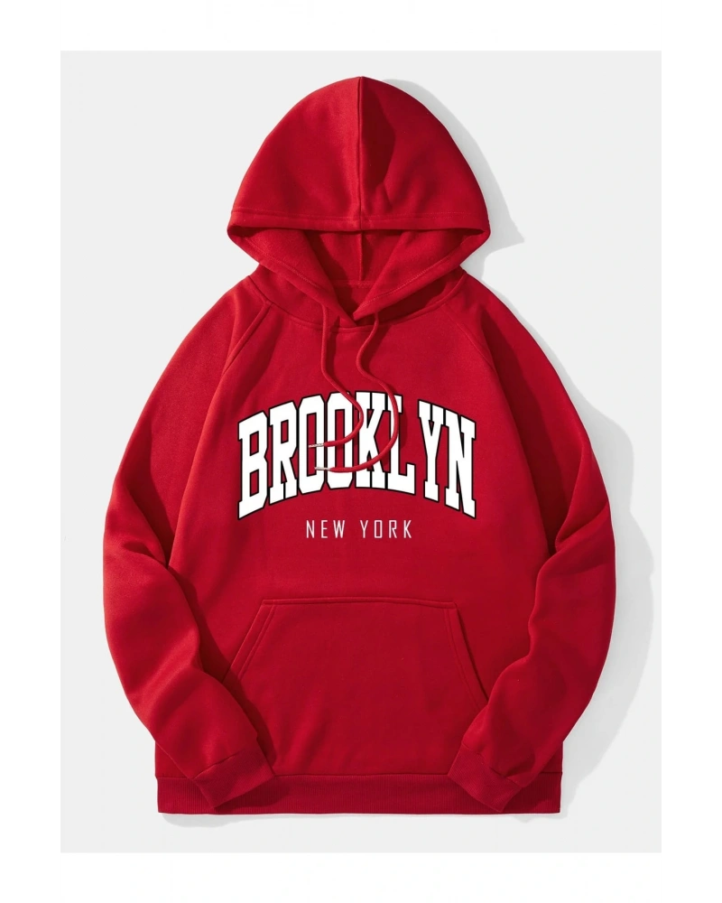 Yasolin----Unisex Brooklyn Baskılı Kapüşonlu Sweatshirt Kırmızı