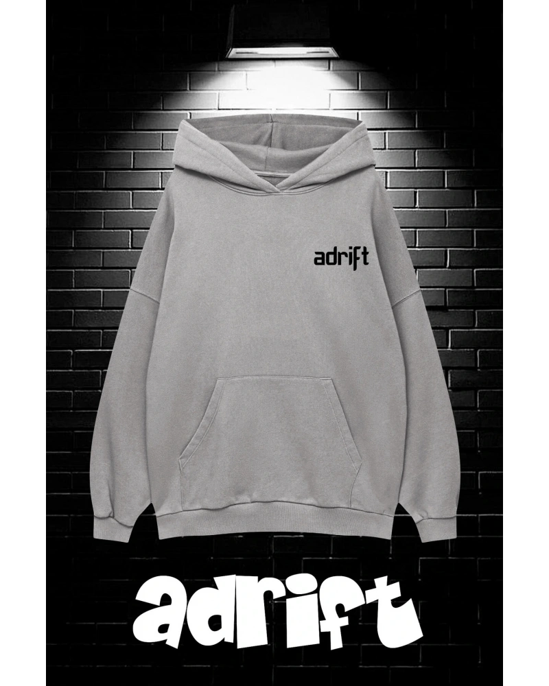 Yasolin----Unisex Oversize Kapüşonlu Kanguru Cepli Goodzila Baskılı Gri