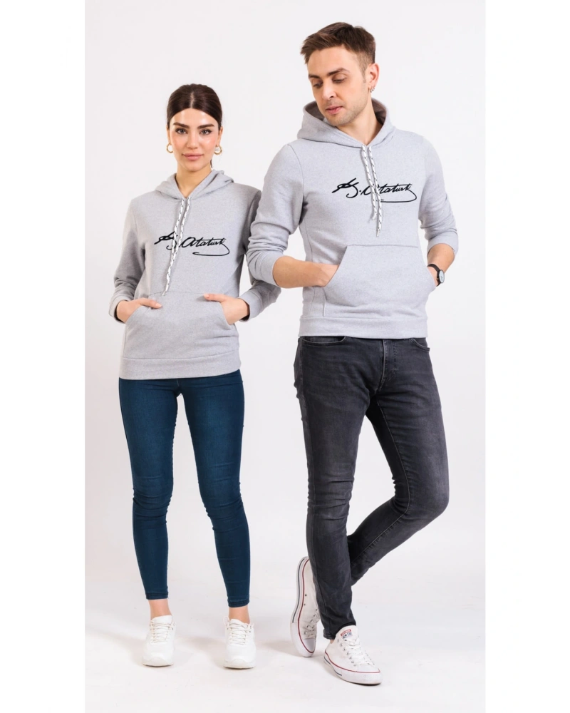 Yasolin----Unisex Renkli Kemal Atatürk Imzalı Kapüşonlu Sevgili Kombin Sweatshirt