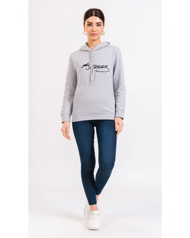 Yasolin----Kadın Gri New Rochelle Baskılı Kapüşonlu Oversize Sweatshirt