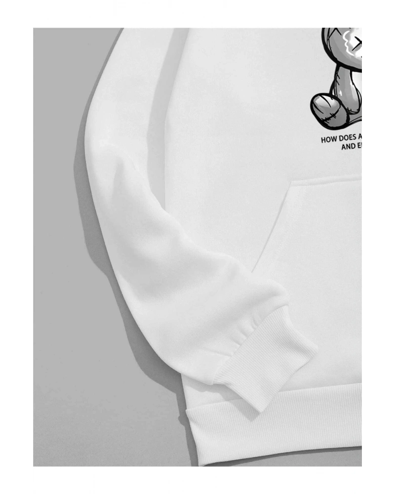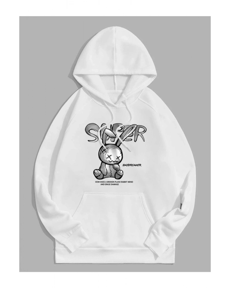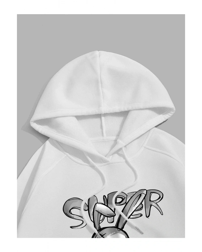 Yasolin----Unisex Super Baskılı Kapüşonlu Sweatshirt Beyaz