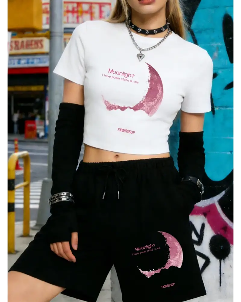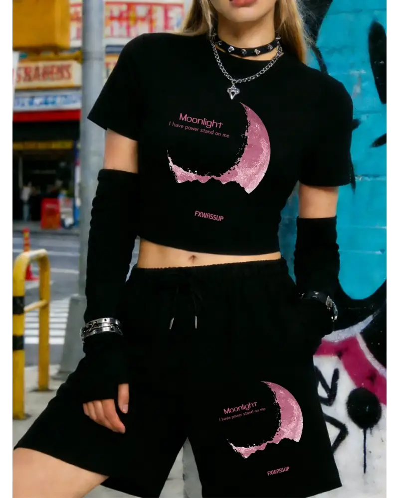 Yaz Güzel Ay Işığı Baskılı Babby Teelar Şortlar Kadın İki Parçalı Set Beş Cepli Pantolon Yükse kaliteli malzeme ve konforlu kullanım sunan bir üründür. Günlük kullanım için ideal olup uygun fiyat ve hızlı kargo avantajıyla sunulmaktadır.