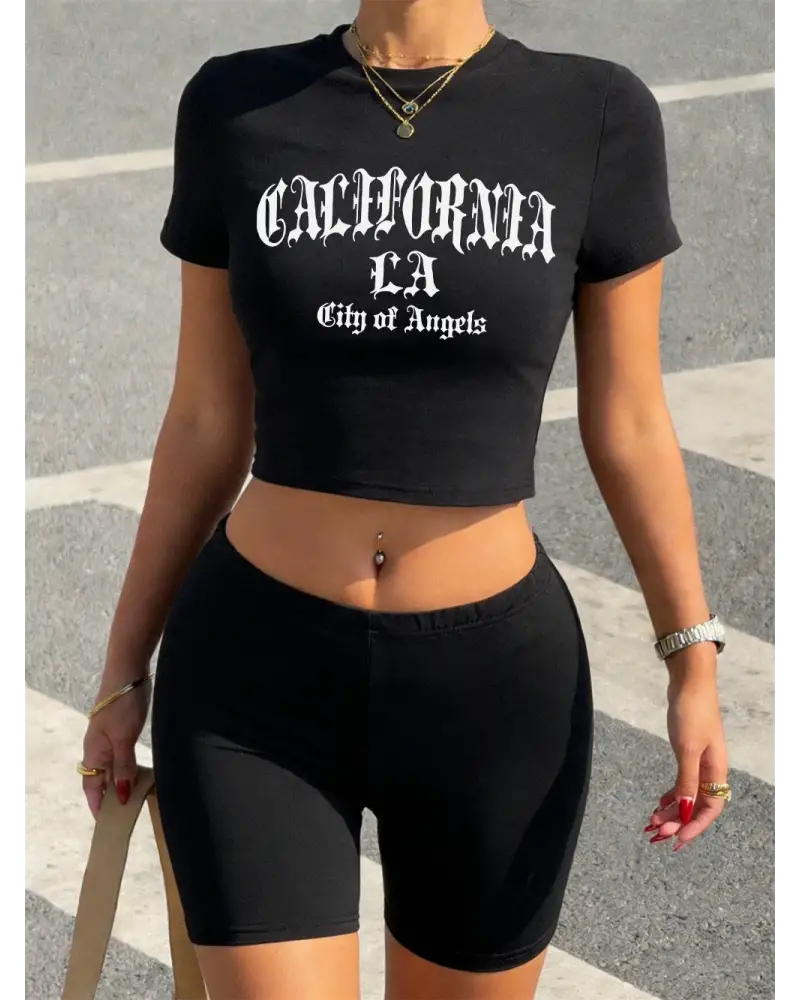 Yaz Kaliforniya Angeles Şehri Baskılı Babby Tees Şort Kadın İki Parçalı Set T-Shirt Pantolon S kaliteli malzeme ve konforlu kullanım sunan bir üründür. Günlük kullanım için ideal olup uygun fiyat ve hızlı kargo avantajıyla sunulmaktadır.