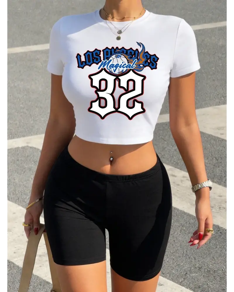 Yaz Los Angeles Büyülü 32 Baskılar Kırpma T-Shirt Şort Kadın İki Parçalı Set Üstleri Pantolon kaliteli malzeme ve konforlu kullanım sunan bir üründür. Günlük kullanım için ideal olup uygun fiyat ve hızlı kargo avantajıyla sunulmaktadır.