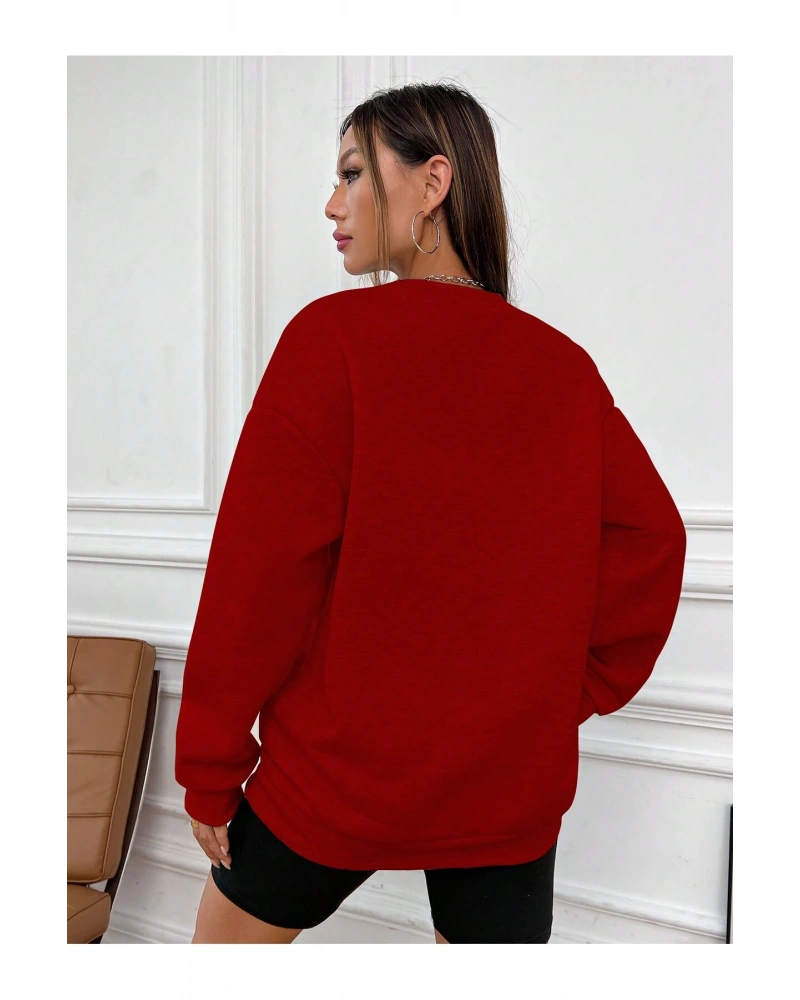 Yazılı Grafik Damla Omuz Sweat Kırmızı